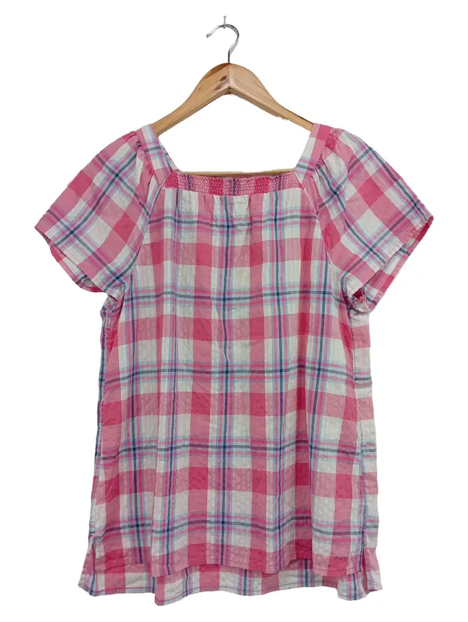 Damen T-Shirt Gr. 36/S Rosa Kariert Preppy Vintage