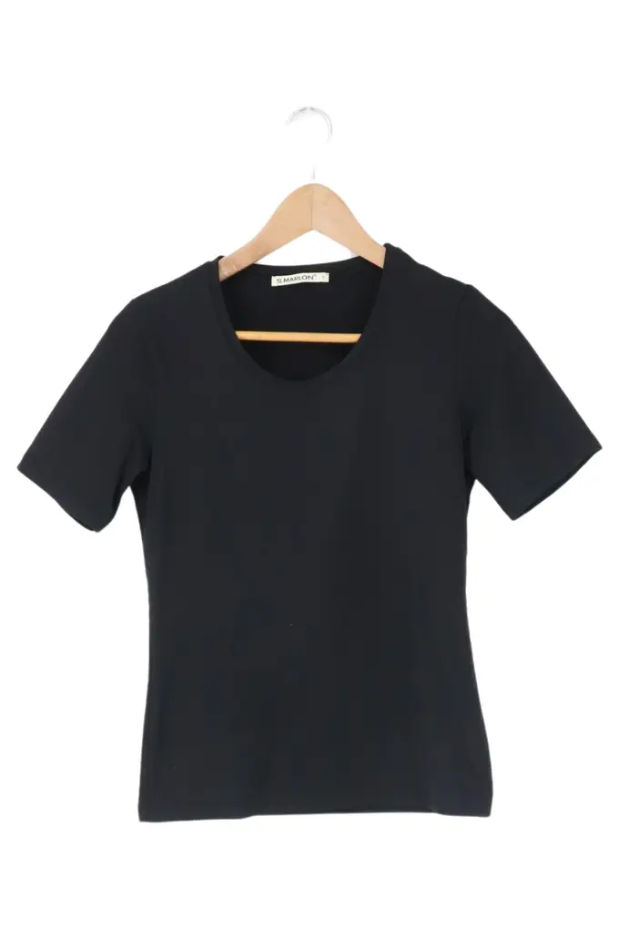 Damen T-Shirt Gr. 36/S Schwarz Basic Kurzarm Polyamid
