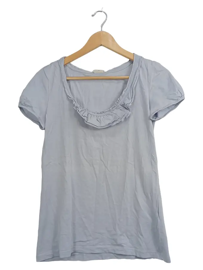 Damen T-Shirt Gr. 38/M Blau Feminin mit Rüschenkragen