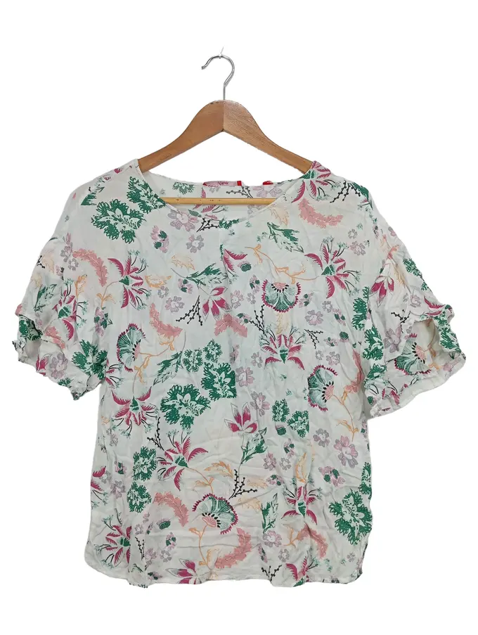 Damen T-Shirt Gr. 38 M Blumenmuster Feminin Viskose Mehrfarbig