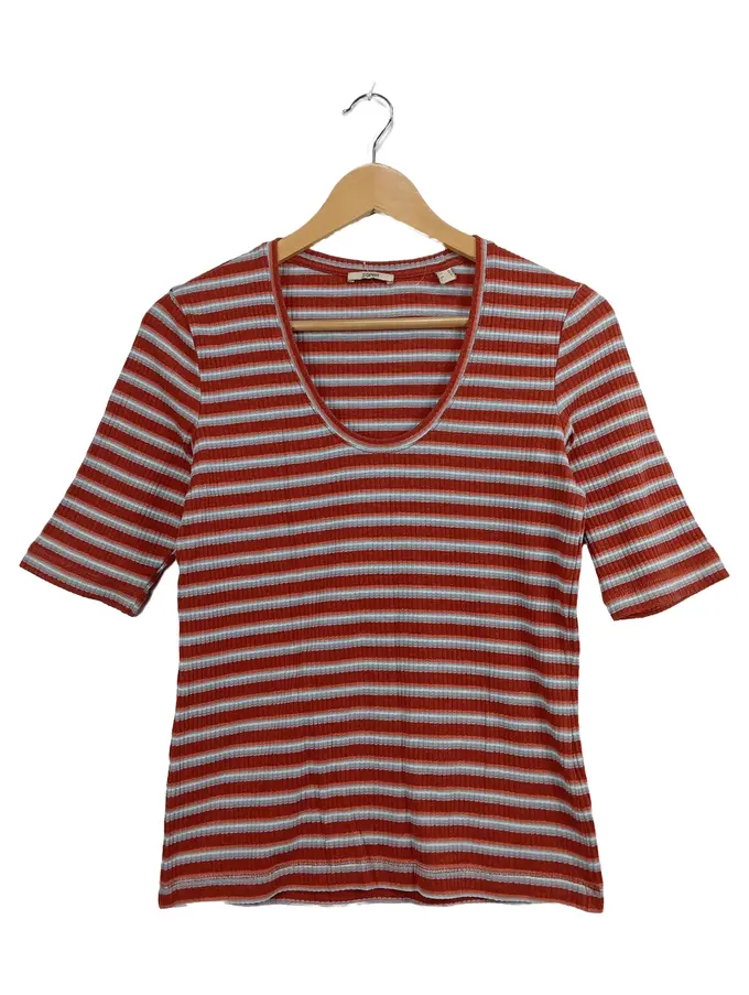 Damen T-Shirt Gr. 38/M Rot Gestreift Rippstrick Kurzarm