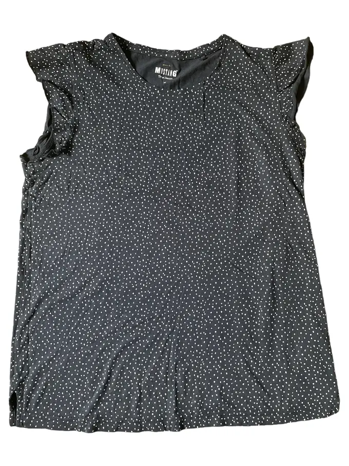 Damen T-Shirt Gr. 38/M Schwarz gepunktet Casual Rüschen