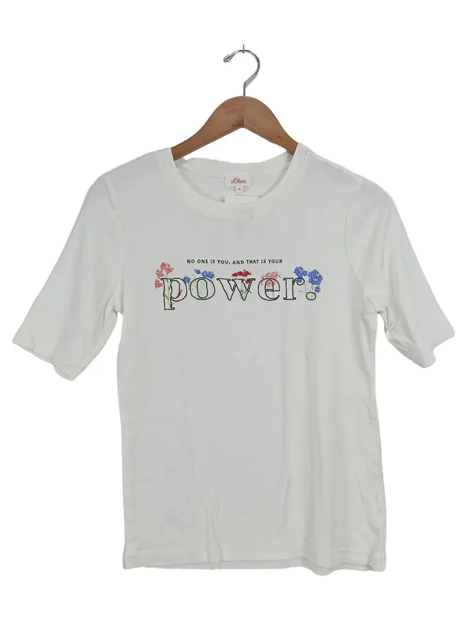 Damen T-Shirt Gr. 38/M weiß mit Power Schriftzug & Blumen Print