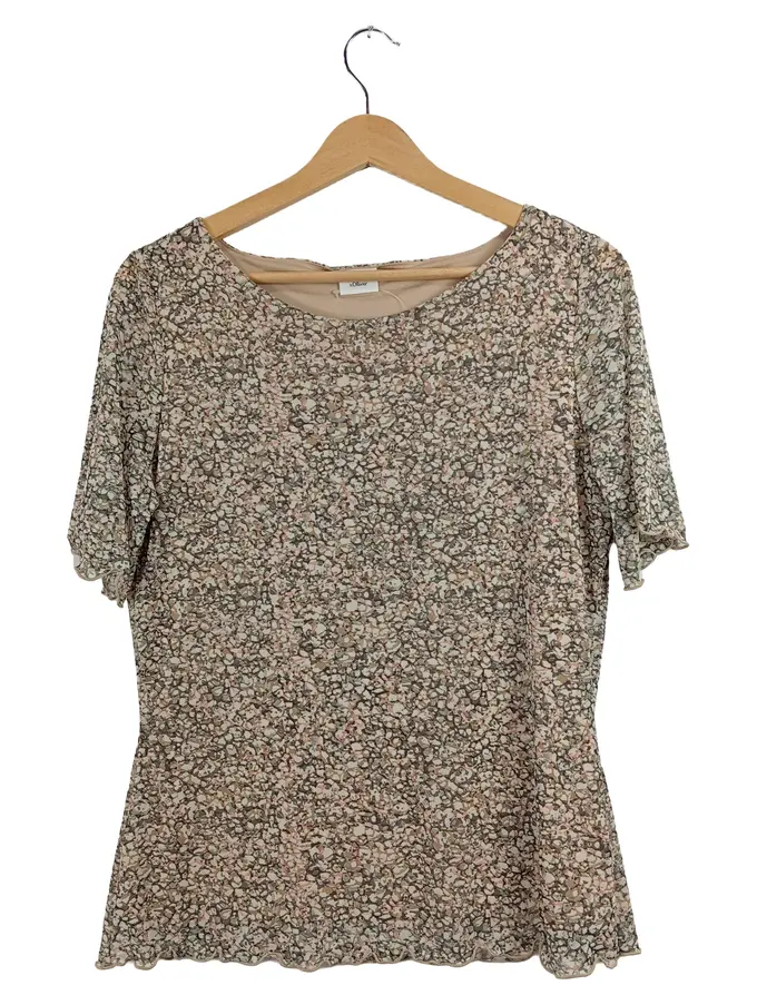 Damen T-Shirt Gr. 40/L Beige Abstrakt Muster Kurzarm