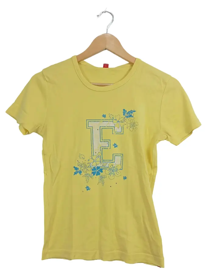 Damen T-Shirt Gr. 40/L Gelb Casual mit E und Blumenprint