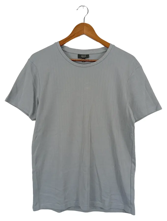 Damen T-Shirt Gr. 40/L Grau Casual Rippstrick Slim Fit