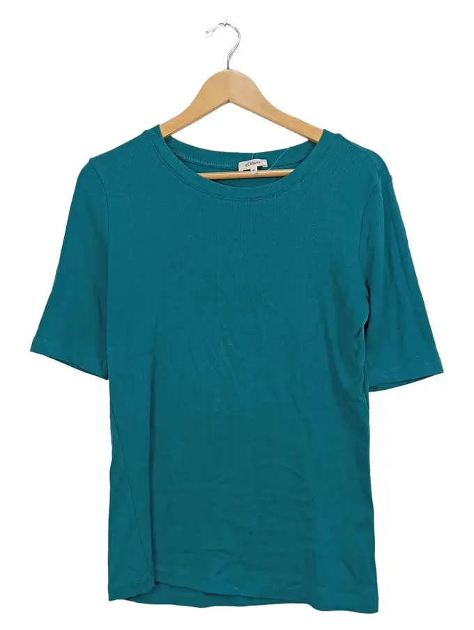 Damen T-Shirt Gr. 40/L Petrol Casual Rippstrick Shirt