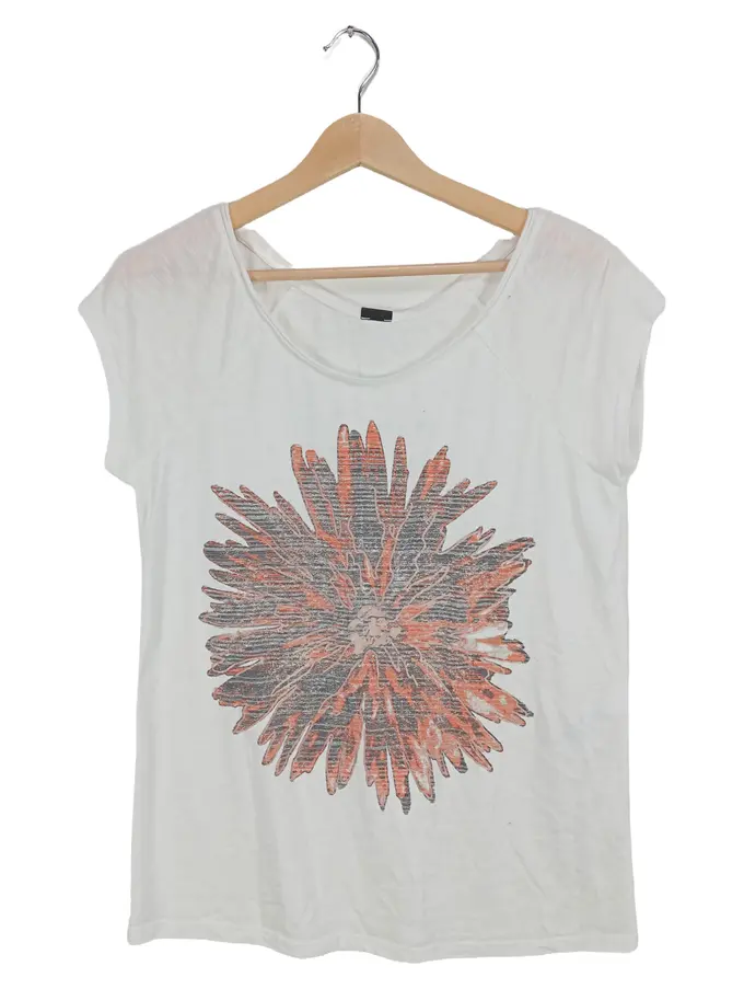 Damen T-Shirt Gr. 40/L Weiß Casual mit Blumenmuster