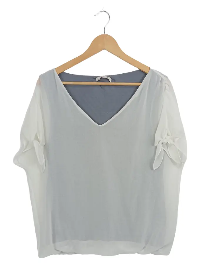 Damen T-Shirt Gr. 40/L Weiß Casual V-Ausschnitt Schleifenärmel