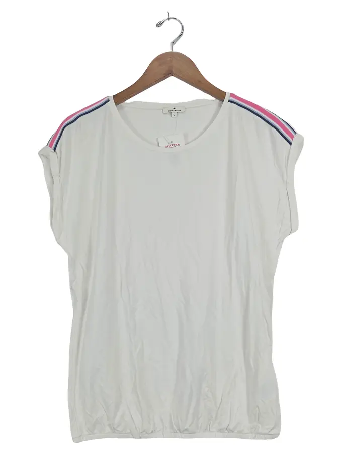 Damen T-Shirt Gr. 40/L Weiß Gestreift Casual