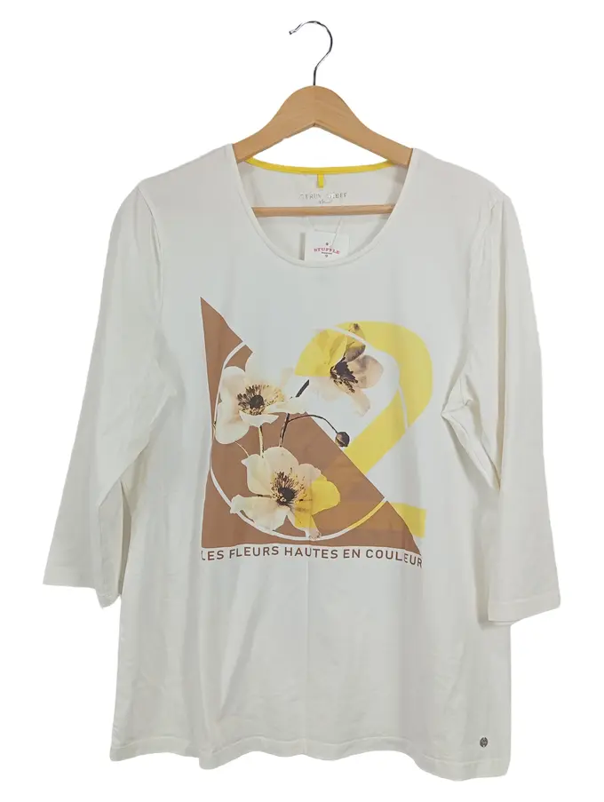 Damen T-Shirt Gr. 40/L weiß mit Blumenmuster