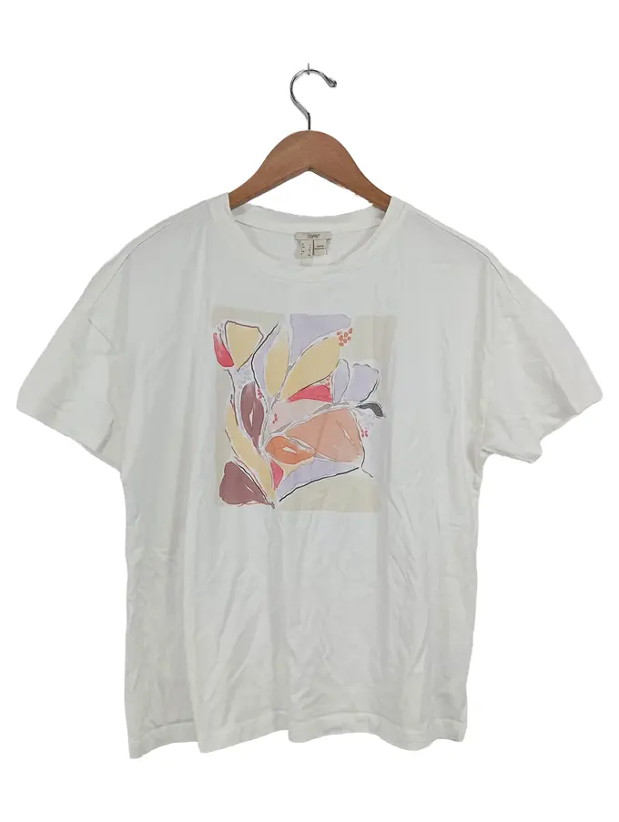 Damen T-Shirt Gr. 40 L Weiß mit Blumenmuster Print Kurzarm
