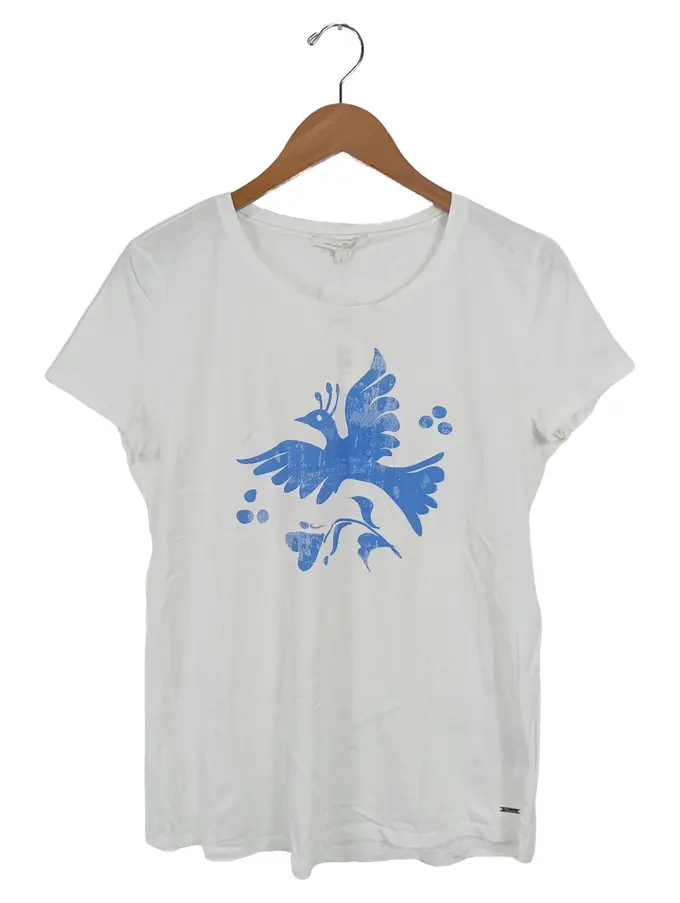 Damen T-Shirt Gr. 40/L Weiß Vogelmotiv Casual