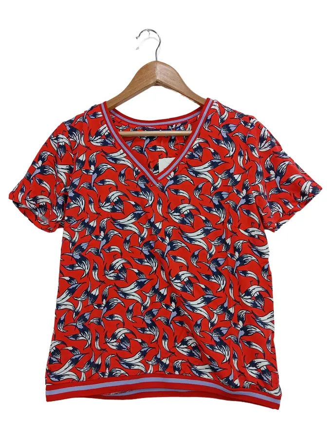 Damen T-Shirt Gr. 40/M Rot Floral Muster Bohemian Vintage