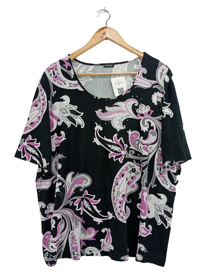 Damen T-Shirt Gr. 40/M Schwarz Paisley Muster Casual