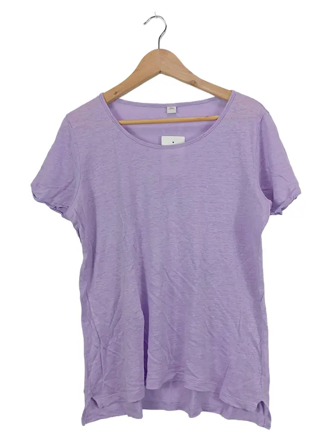 Damen T-Shirt Gr. 42 XL Lila Leinen Casual Kurzarm