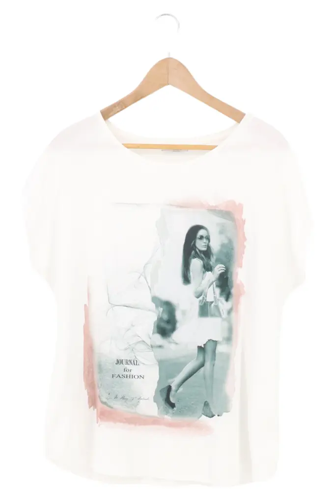 Damen T-Shirt Gr. 42/XL Weiß Grafisch Casual Modern