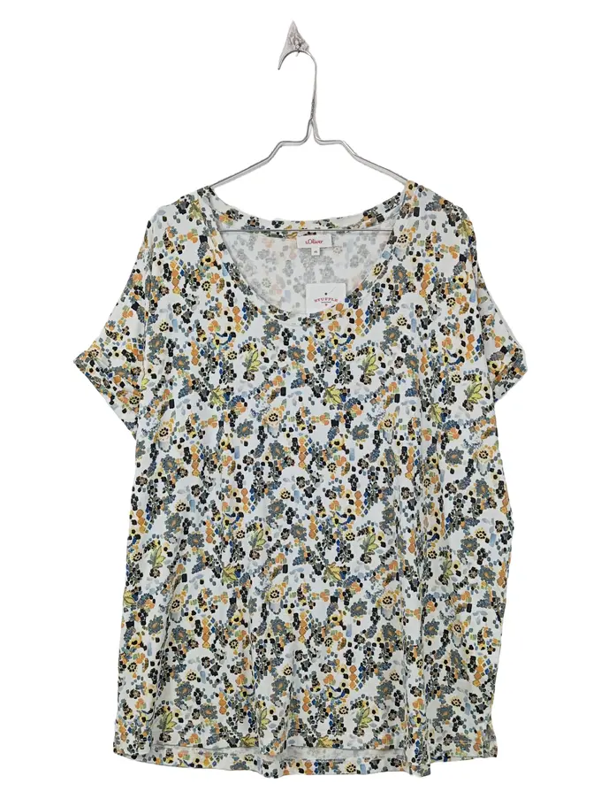Damen T-Shirt Gr. 46/3XL Blumenmuster Viskose Mehrfarbig