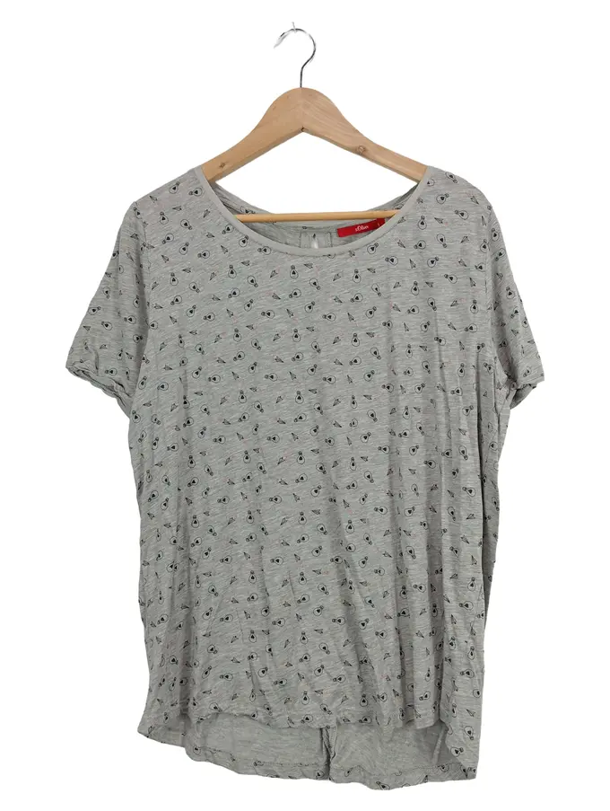 Damen T-Shirt Gr. 46 Grau Grafisches Muster Casual