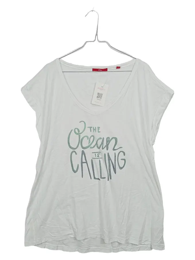 Damen T-Shirt Gr. 46 Weiß Schriftzug Baumwolle Casual Freizeit