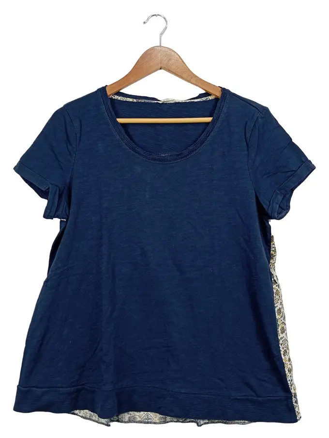 Damen T-Shirt Gr. L Blau mit grafischem Seitenmuster
