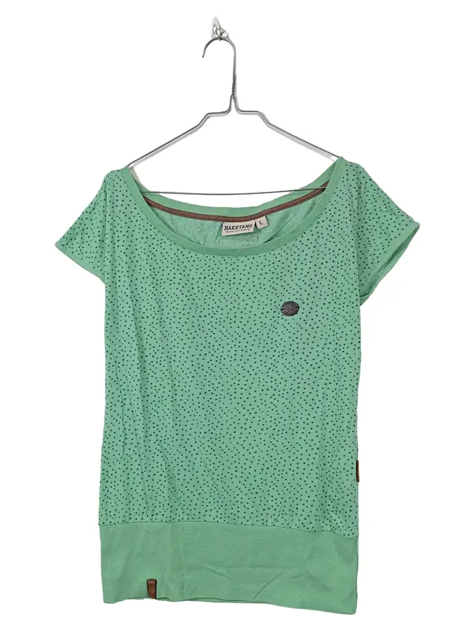Damen T-Shirt Gr. L Grün Sternenmuster Casual Baumwolle