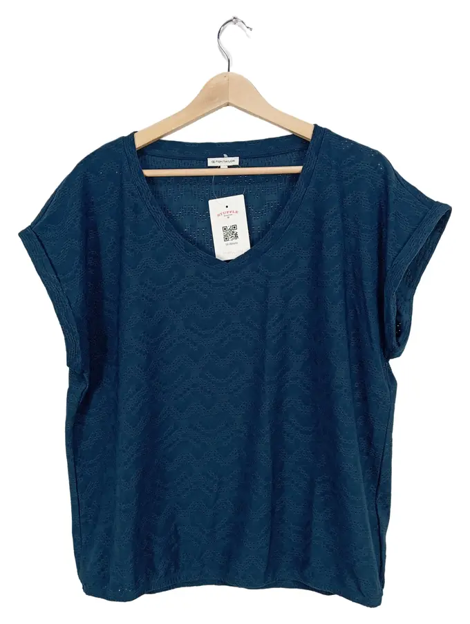 Damen T-Shirt Gr. L Petrol Lochmuster Freizeit Kurzarm