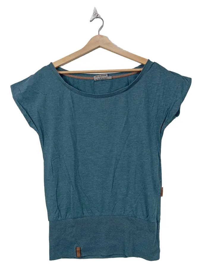 Damen T-Shirt Gr. L Petrol Meliert Baumwolle Casual