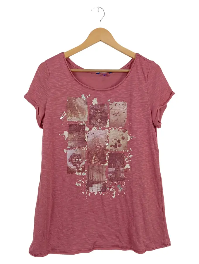 Damen T-Shirt Gr. L Rosa Grafik Print Pailletten