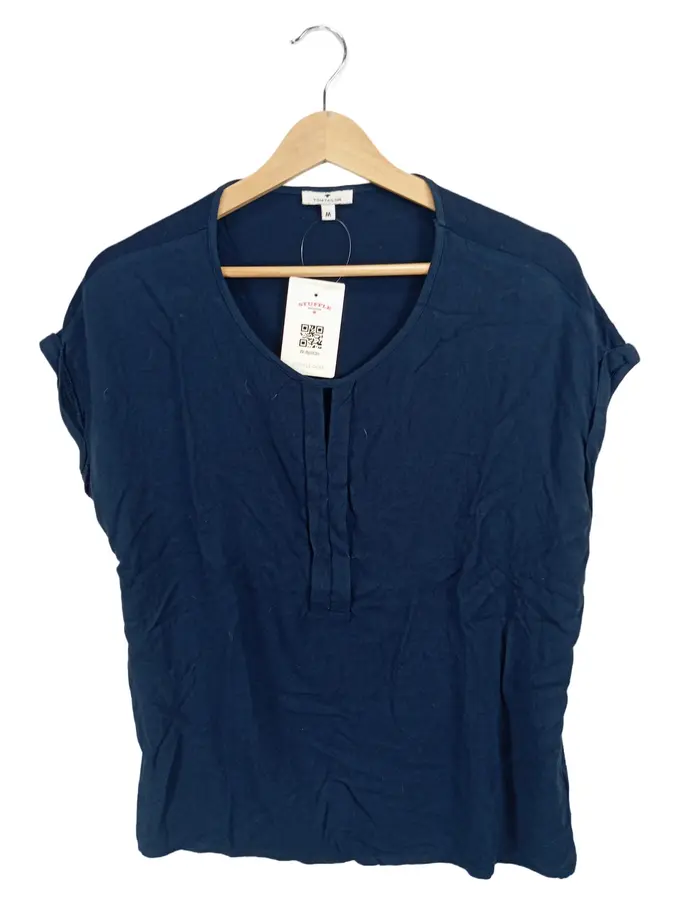Damen T-Shirt Gr. M Blau Viskose Casual Kurzarm