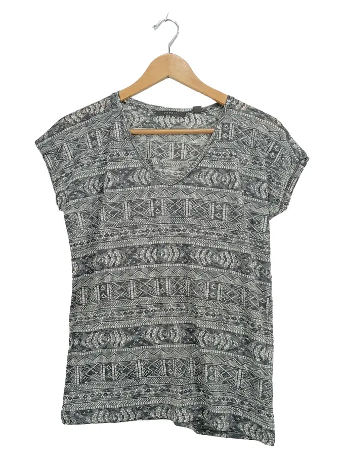 Damen T-Shirt Gr. M Ethno-Muster Grau Boho Style
