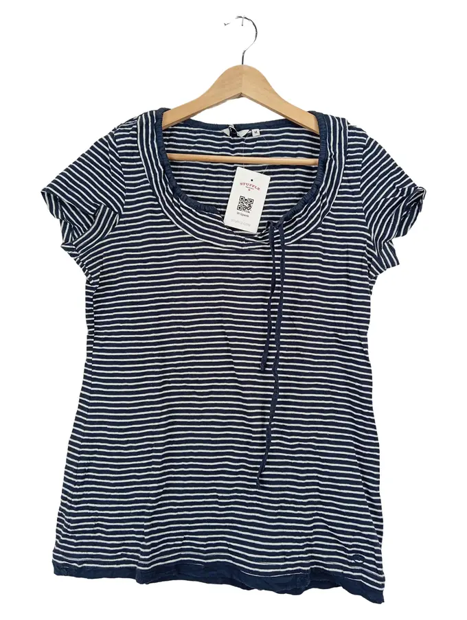 Damen T-Shirt Gr. M Gestreift Blau Weiß Maritim Bindedetail