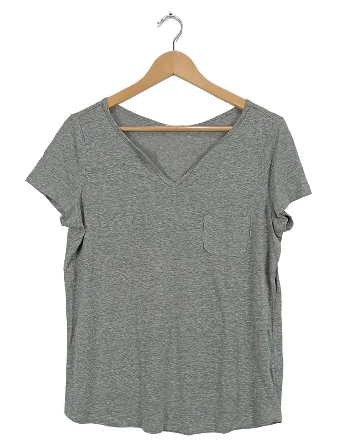 Damen T-Shirt Gr. M grau meliert V-Ausschnitt Brusttasche Basic
