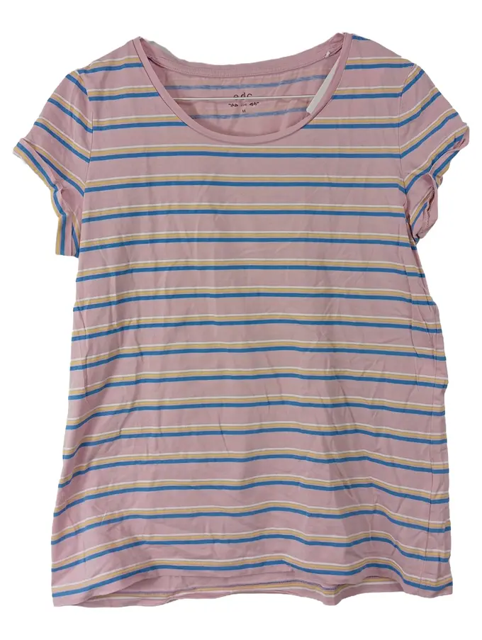 Damen T-Shirt Gr. M Rosa Gestreift Baumwolle Casual