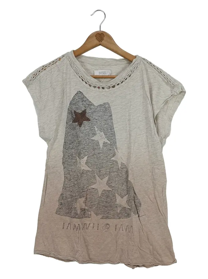 Damen T-Shirt Gr. M Sternenmotiv Used Look Beige Baumwolle