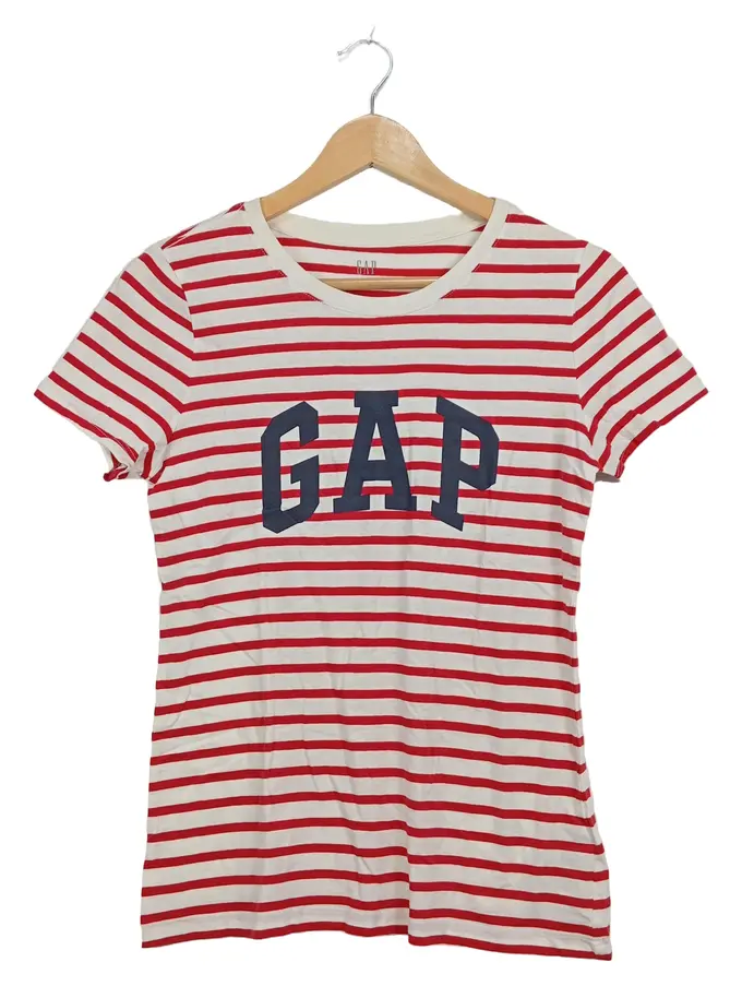 Damen T-Shirt Gr. S Gestreift Logo-Print Mehrfarbig Baumwolle Freizeit