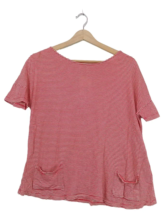 Damen T-Shirt Gr. S gestreift rot weiß Maritim mit Taschen