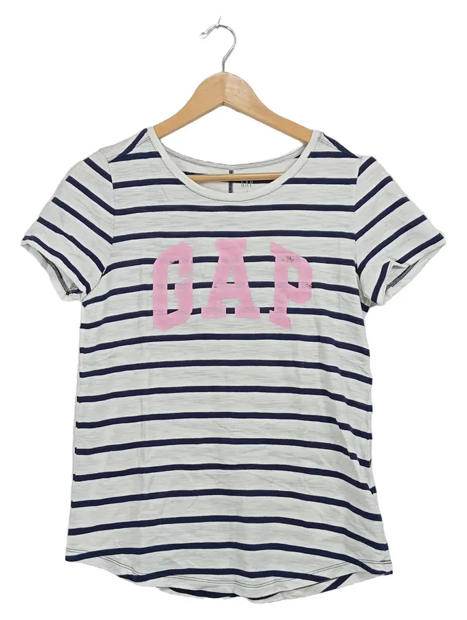 Damen T-Shirt Gr. S gestreift weiß Baumwolle Kurzarm Logo Print