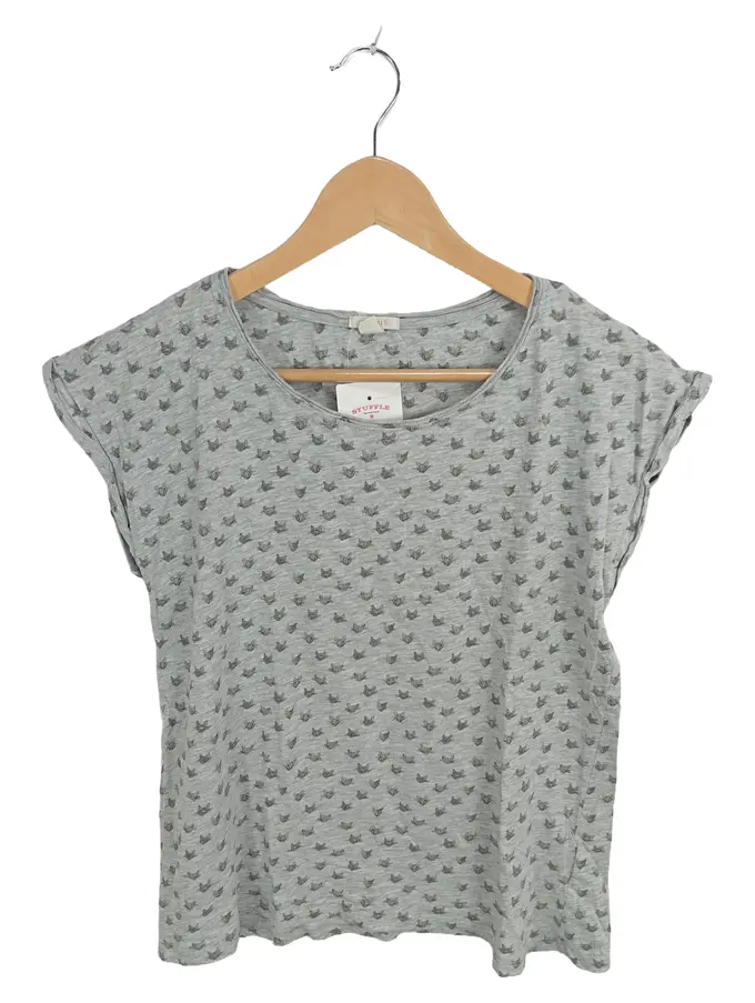 Damen T-Shirt Gr. S Grau Katzenmuster Kurzarm Casual