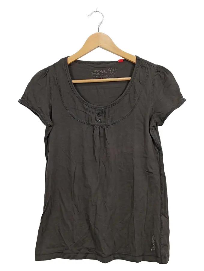 Damen T-Shirt Gr. S grau Kurzarm Zierknöpfe Baumwolle Casual