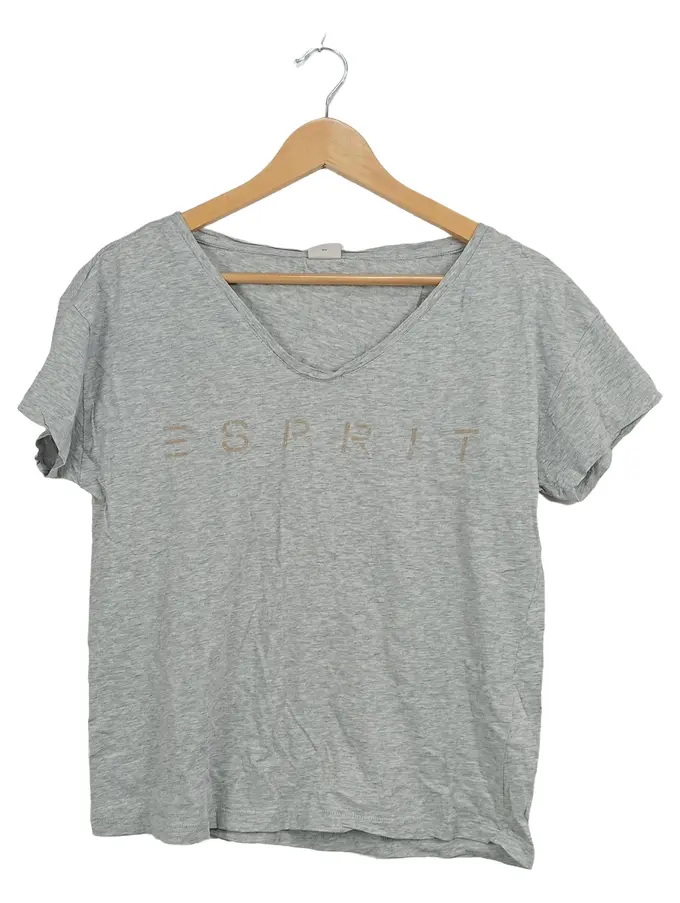 Damen T-Shirt Gr. S grau meliert Logo-Print Baumwolle