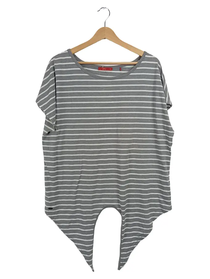 Damen T-Shirt Gr. XL Grau Weiß Gestreift Asymmetrisch
