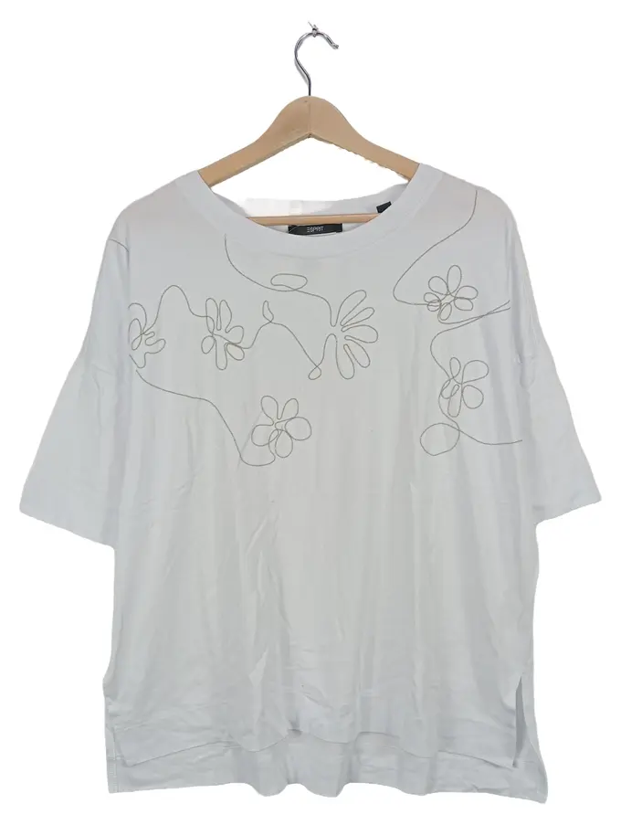 Damen T-Shirt Gr. XL Weiß Floralmuster Stickerei Kurzarm Baumwolle