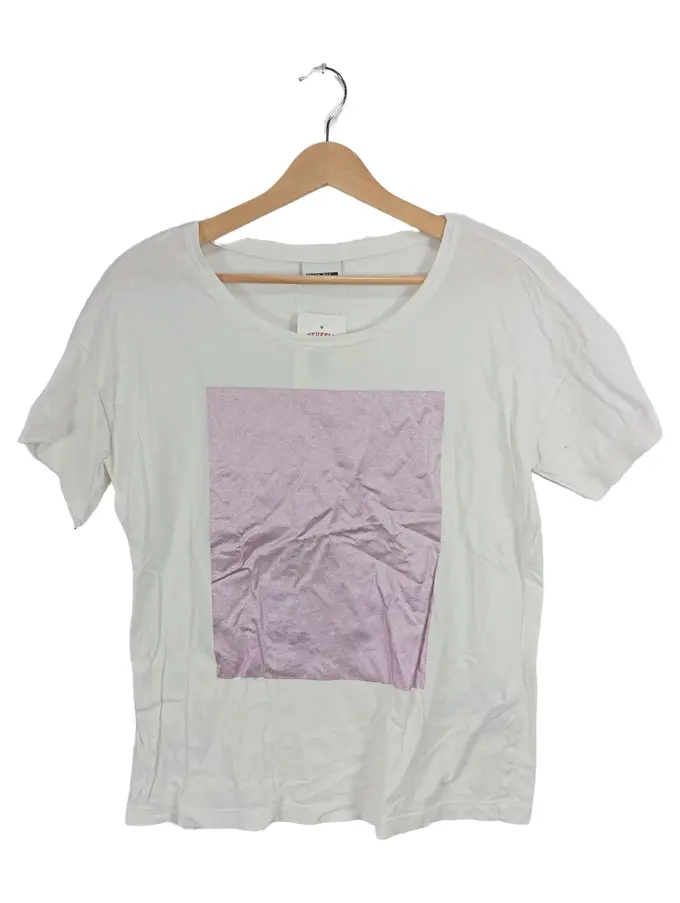 Damen T-Shirt Grafik Print Metallic Look Weiß Gr. M