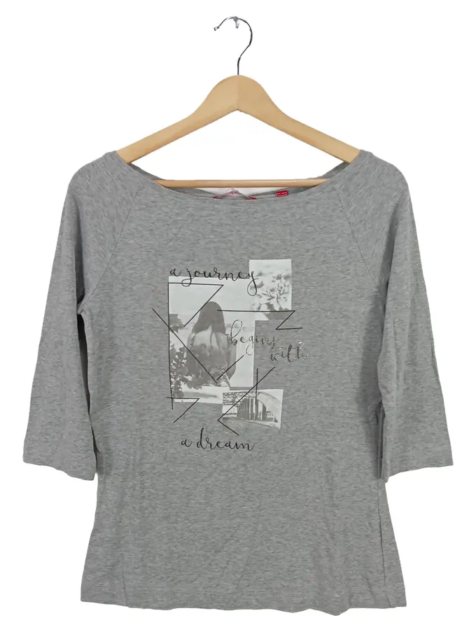 Damen T-Shirt Grau Print Gr. 40/L Casual 3/4-Arm
