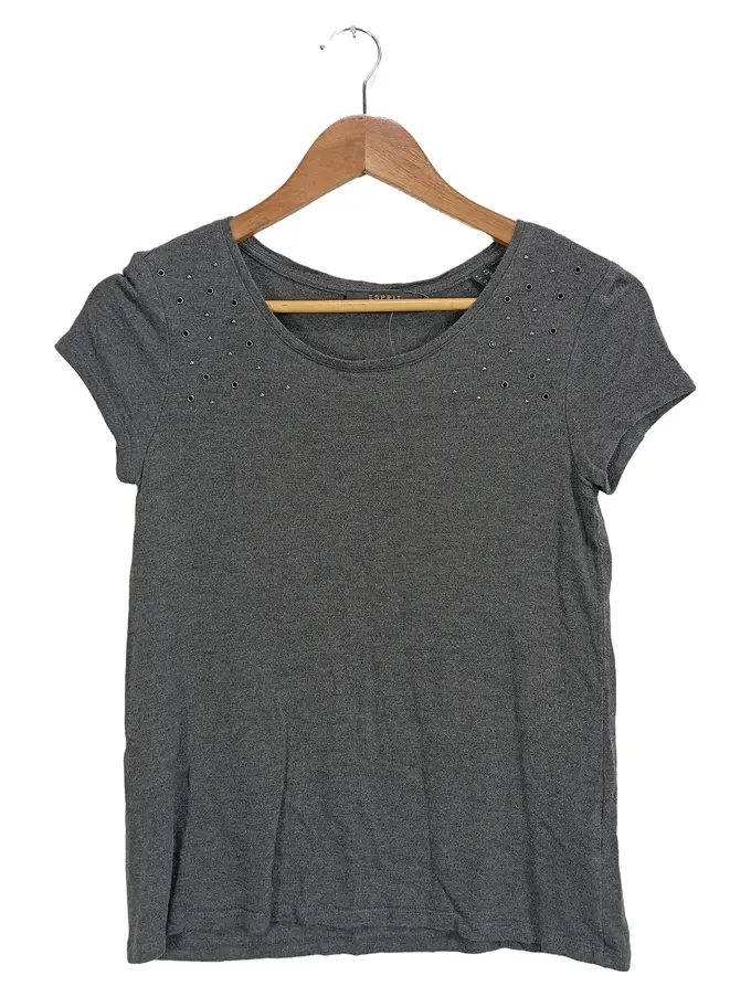 Damen T-Shirt Grau XL Casual Strass Cut-Outs