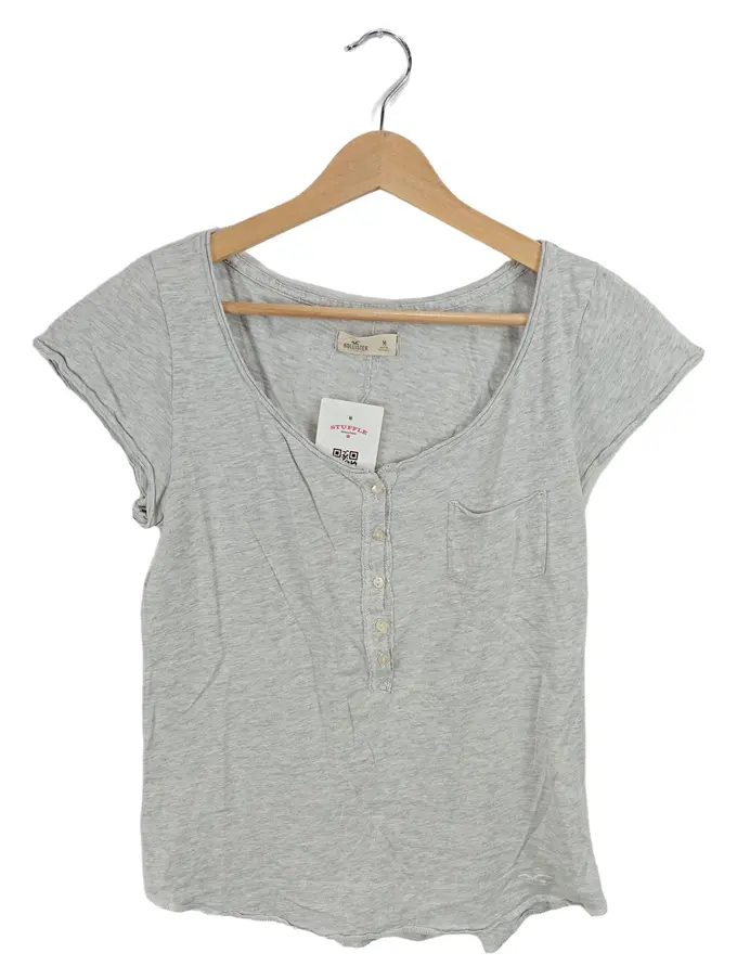 Damen T-Shirt Henley Grau Meliert Größe M Kurzarm