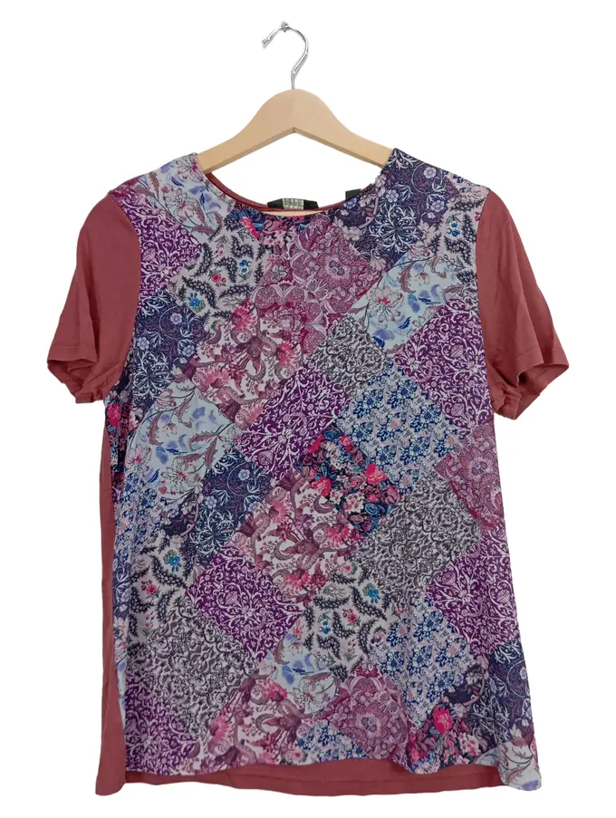 Damen T-Shirt Kurzarm Blumenmuster Mehrfarbig Gr. 38/M Freizeit