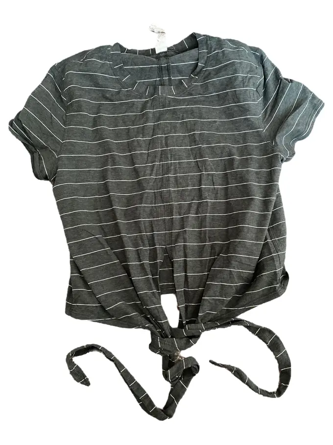 Damen T-Shirt Kurzarm Gestreift Schleife Grau 34;XS