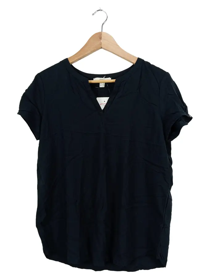 Damen T-Shirt Kurzarm Schwarz Gr. 38 Viskose Casual Uni